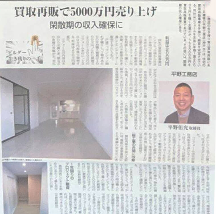 工務店事業と買取再販事業・不動産賃貸オーナー業を手掛け経営を安定させています。